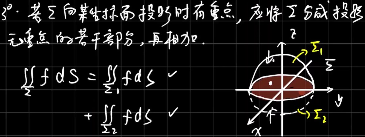 若Σ向某坐标面投影使有重(chong)点,应将Σ分成投影无重点的若干部分,再相加