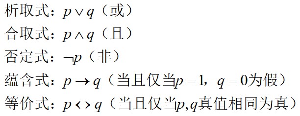 - 命题变项(命题变元):真值可以变化的简单陈述句