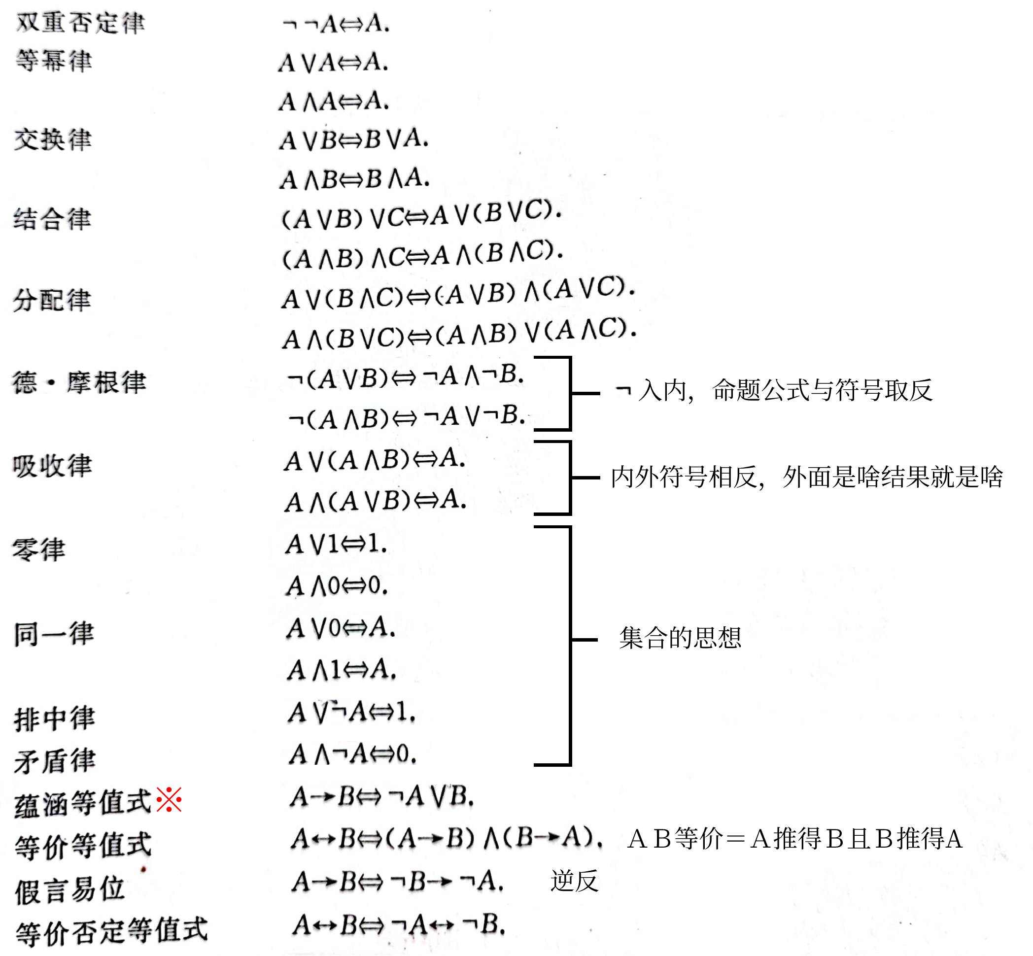 1、等值式:若等价式是重言式,则A,B等值,记A⇔B
