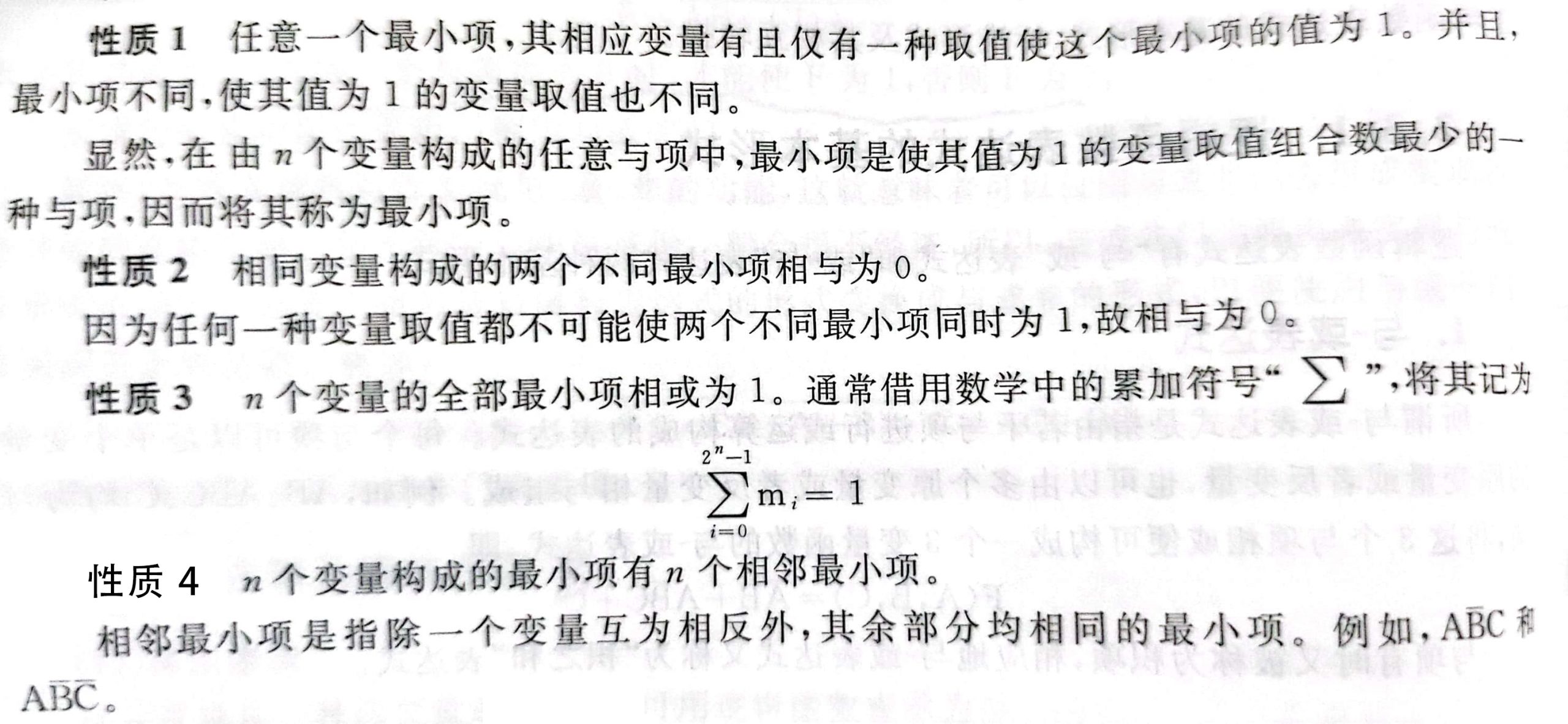 包含全部n个变量,每个变量都以原变量或反变量形式出现,