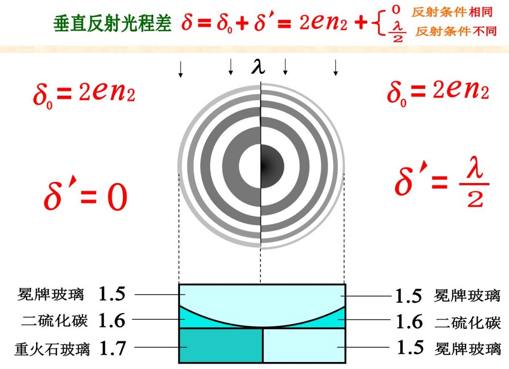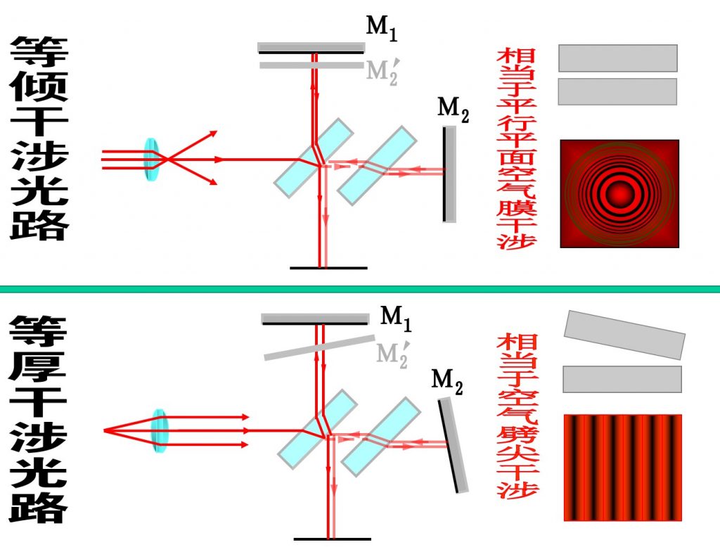 平移M1(M1平移d,吐出或吞进N个干涉条纹,总光程差(往返)2d=Nλ即d=Nλ/2)