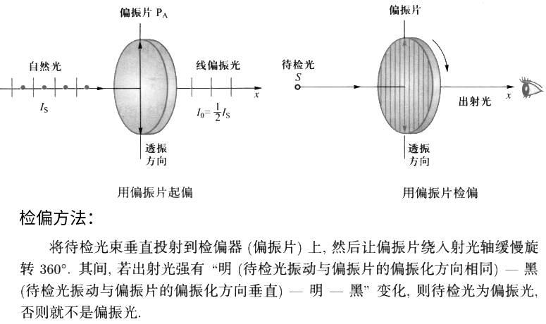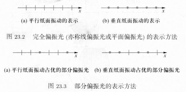 - 完全偏振光:某一束光的光矢量E只沿一个确定的方向振动