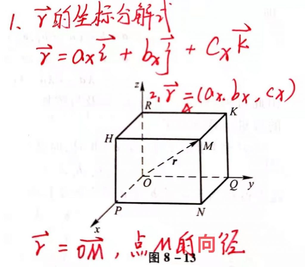2. 方向角:非零向量r与三条坐标轴的夹角α、β、γ