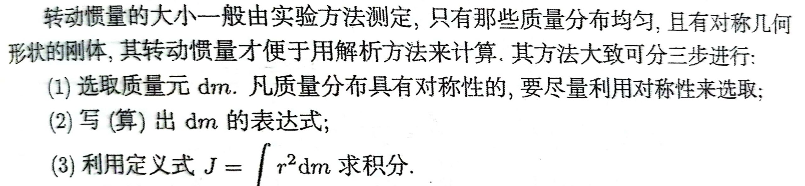 - 刚体的转动惯量(I/J):组成刚体的各质元质量与质元到转轴距离平方乘积的代数和