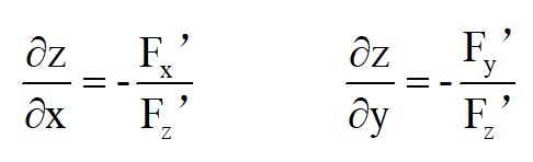 当F(x,y,z)=0(右边必须等于0),F(x0,y0,z0)=0且Fz’(x0,y0,z0)≠0(位于公式分母)时,满足