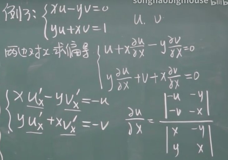 ①方程组各方程,两边对所求变量(分母上的变量)求偏导。